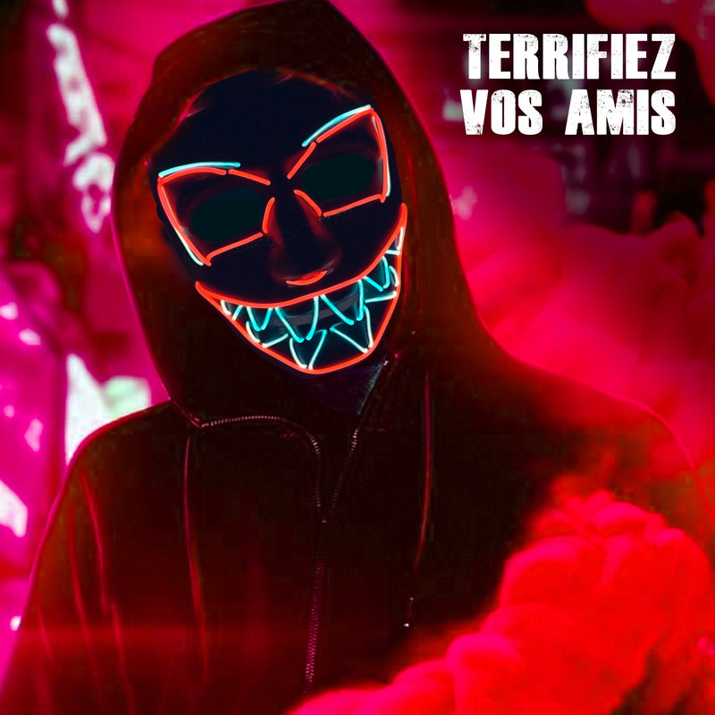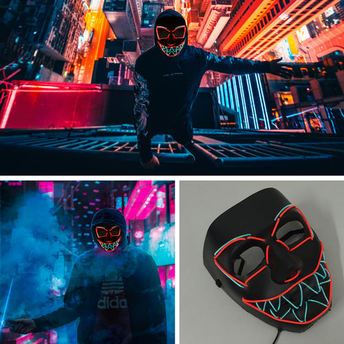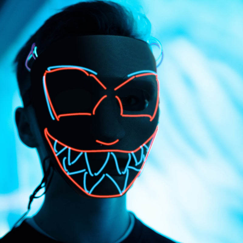 Masque néon pour illuminer de façon effrayante la fête Hallowen et tes soirées déguisées ! Il peut également faire office de décoration !