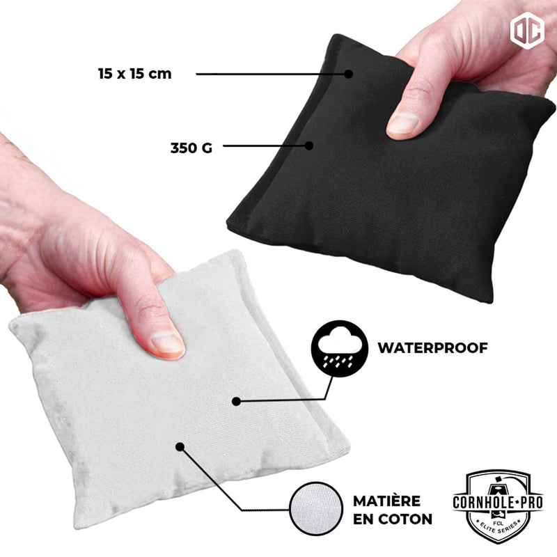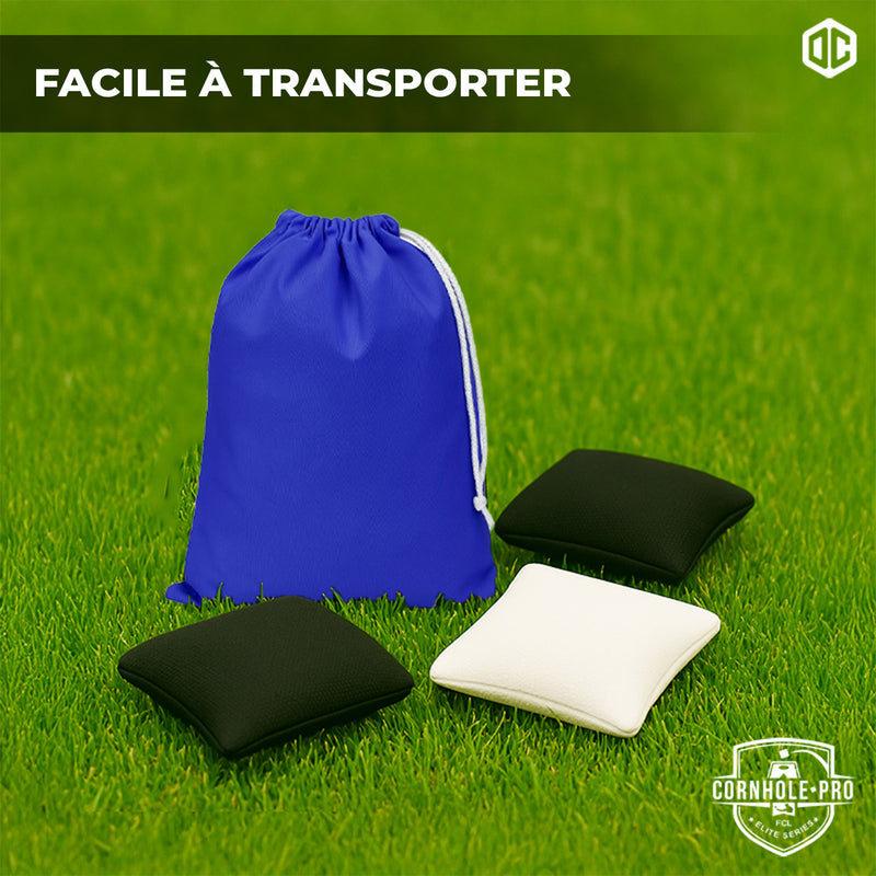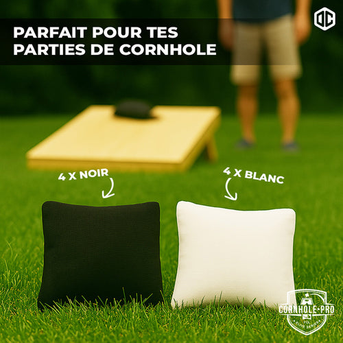 Sacs Officiels de Cornhole - 4 Sacs Noirs et 4 Sacs Blancs