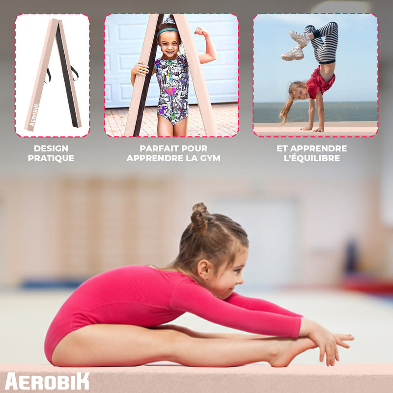 Aerobik - Poutre de Gymnastique Pliable Rose Pastel pour Enfants et Adultes