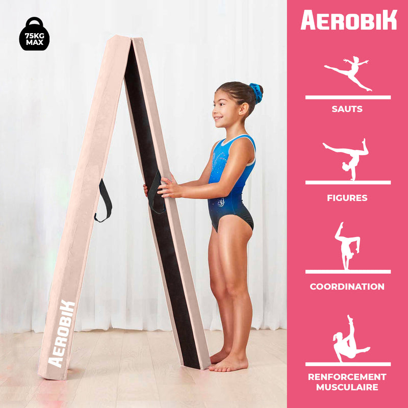 Superbe poutre Aerobik® Rose Pastel pour vous entraîner chez vous. Pliable et facilement transportable grâce à ses poignées intégrées, elle ne prend pas de place et s'installe en quelques secondes.