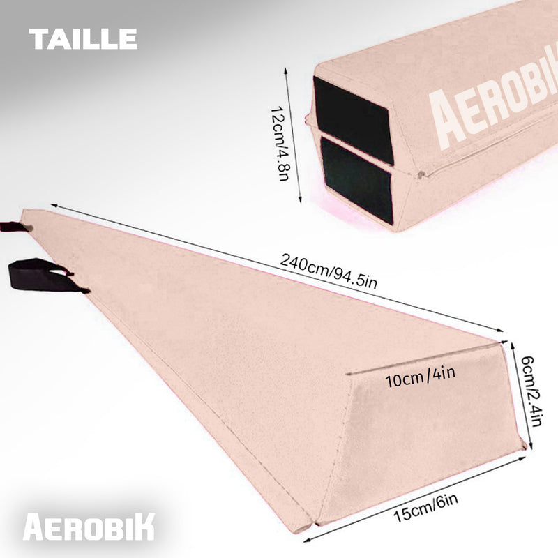 • TAILLE : La poutre mesure 240cm quand elle est dépliée et 120cm quand elle est pliée afin de faciliter le transport. La largeur de la surface supérieure est de 10cm et celle de la base est de 15cm, ce qui la rend très stable.